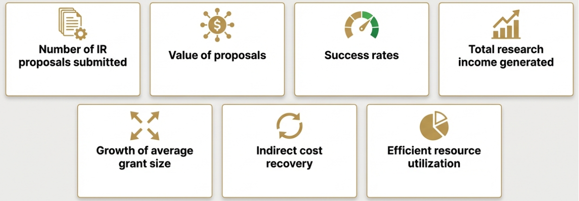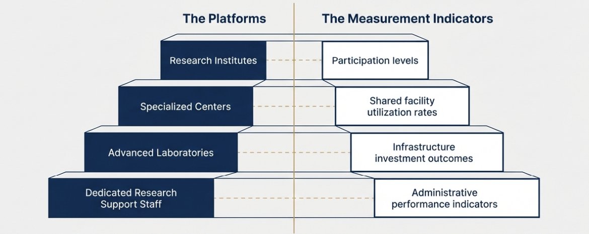 The effectiveness of this infrastructure is assessed through participation levels, shared facility utilization, infrastructure investment outcomes, and administrative performance indicators. Dedicated research support staff work closely with academic units to maintain an efficient and collaborative research ecosystem.