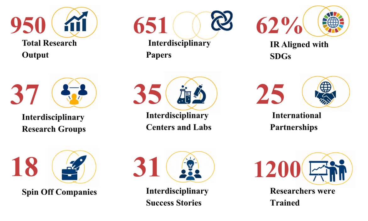 To ensure excellence and accountability, the University has established a structured framework with clear performance indicators to evaluate the quality, impact, and sustainability of interdisciplinary research across its faculties, institutes, and research centers. Including: